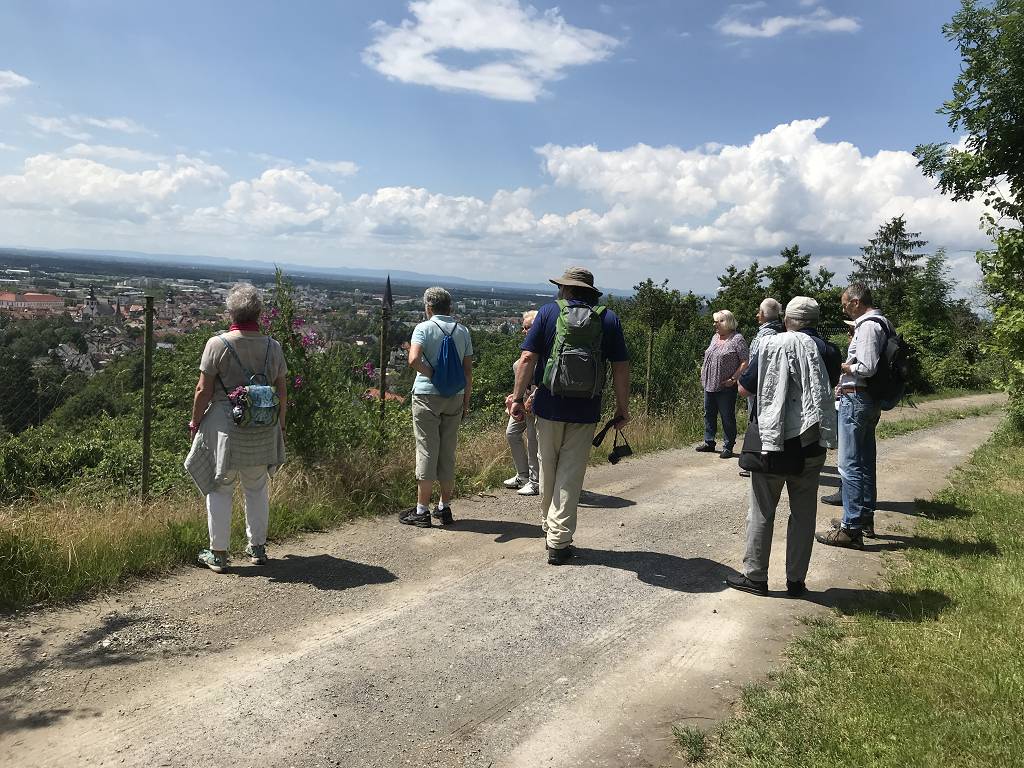 Bei leicht sommerlichen, aber erträglichen Temperaturen begab sich eine Gruppe von über zehn interessierten Wanderern auf den Weg, ausgehend vom Wasserreservoir in der Bismarckstraße. Zunächst wurden die Teilnehmer auf die Führung eingestimmt mit einer kurzen Historie der Region Ettlingen, wie der Weinbau und die Trockenmauern hierher kamen und wie sich letztendlich der Verein der Rebleute vor fast 190 Jahren konstituiert hat.