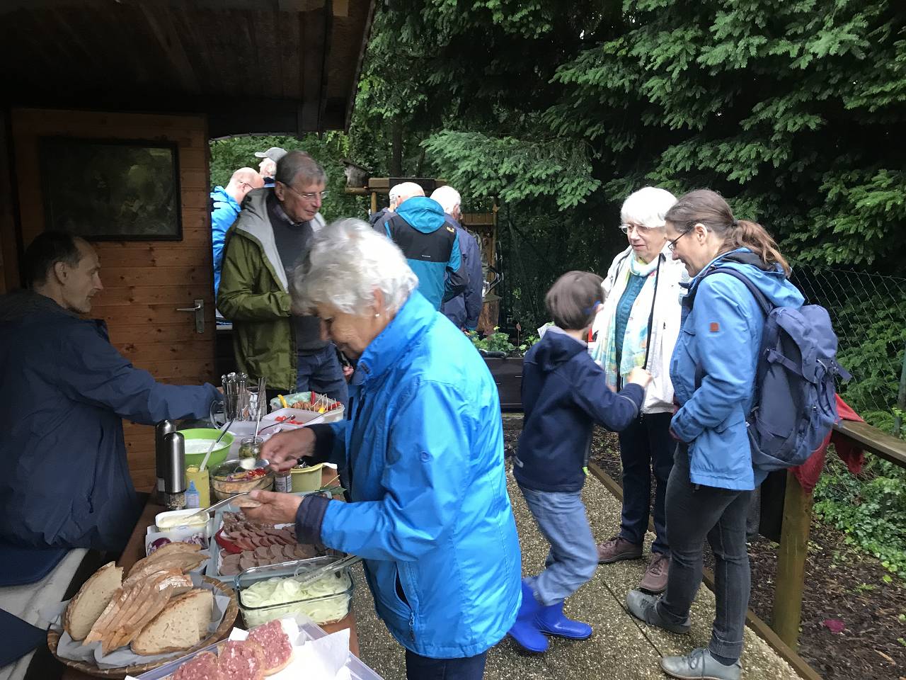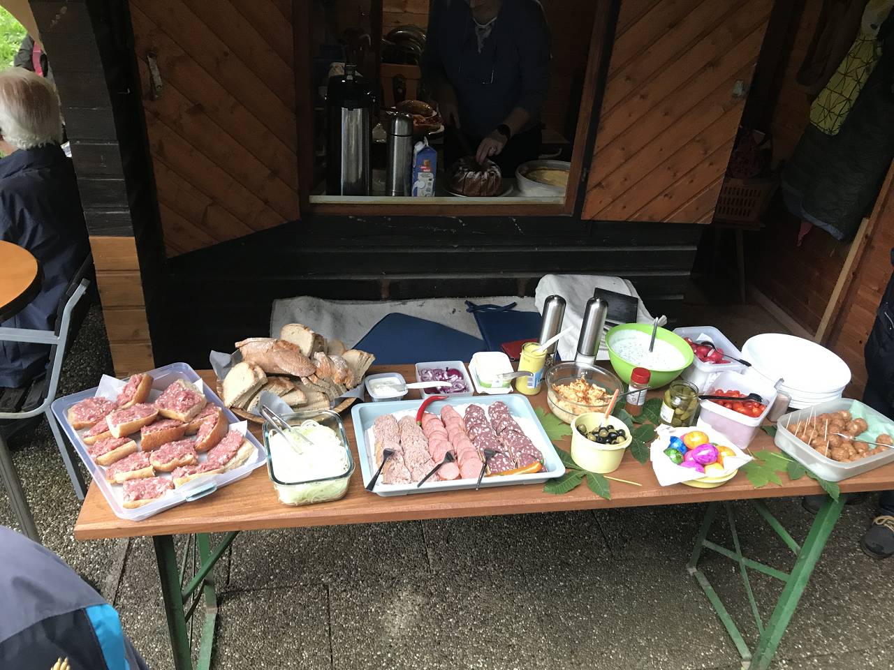 Nein, die Überschrift dieses Beitrages stellt keine Zusammenfassung des Buffets beim Frühjahrs-Frühschoppen der Robbergfreunde im Jahr 2024 dar, sondern spiegelt die Stimmungslage der Vorstandsmitglieder in den Tagen vor dem Frühschoppen am 2. Juni wider. Satter Regen von Donnerstag Nachmittag bis einschließlich Sonntag kündigte die Wettervorhersage an. Und so hielten wir es mit den Worten der Hip-Hop Band „Fettes Brot“ in einem Song: „Soll ich′s wirklich machen oder lass ich’s lieber sein? Jein“. Letztendlich gewann dann doch der Wagemut die Oberhand und wir führten die Veranstaltung durch. Und siehe da, der Regen endete gegen 9:30 Uhr, eine halbe Stunde vor Veranstaltungsbeginn, und wir konnten dann doch noch gemütlich zusammensitzen ohne weitere Beeinträchtigung von oben.
