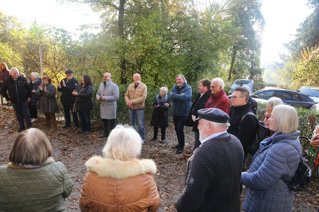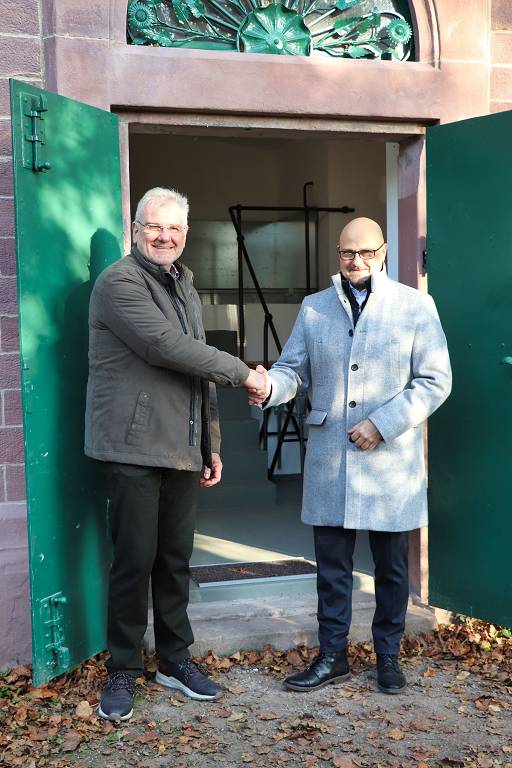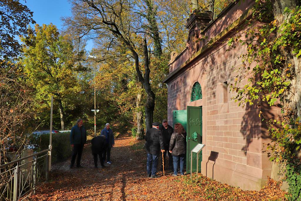Über dreißig Gäste fanden sich am Samstag, den 9. November zur Wiedereröffnung nach Sanierung am Wasserreservoir Robberg am Ende der Bismarckstraße ein. Bei strahlender, spätherbstlicher Sonne, umrahmt von goldenem Herbstlaub, erfolgte nach 5-jähriger Planung und Bauzeit in einem kleinen Festakt die Übergabe des glanzvoll sanierten Bauwerkes von der Stadt Ettlingen als Eigentümerin, vertreten durch Herrn Oberbürgermeister Johannes Arnold, an die Robbergfreunde Ettlingen e.V., die bereits vor der Sanierung das Gebäude als Lagerstätte für das Vereinsinventar nutzen. Im Zuge der Einweihungsfeier wurde somit das ehemalige Domizil der Robbergfreunde wieder der Vereinsnutzung zugeführt.